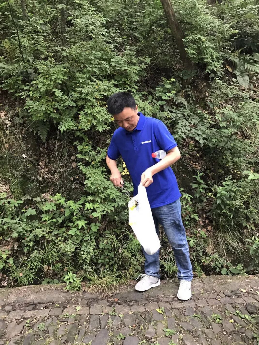 整个场活动持续了三个半小时,每一位参与者不顾天气的炎热,山路的崎岖,在登山途中仔细搜寻,不遗漏一丁点垃圾,就连很难夹起的烟头,也不轻易放过。途中经常可以看到百朗的小伙伴蹲在山路上,小心翼翼地把烟头夹起装进垃圾袋的情景。