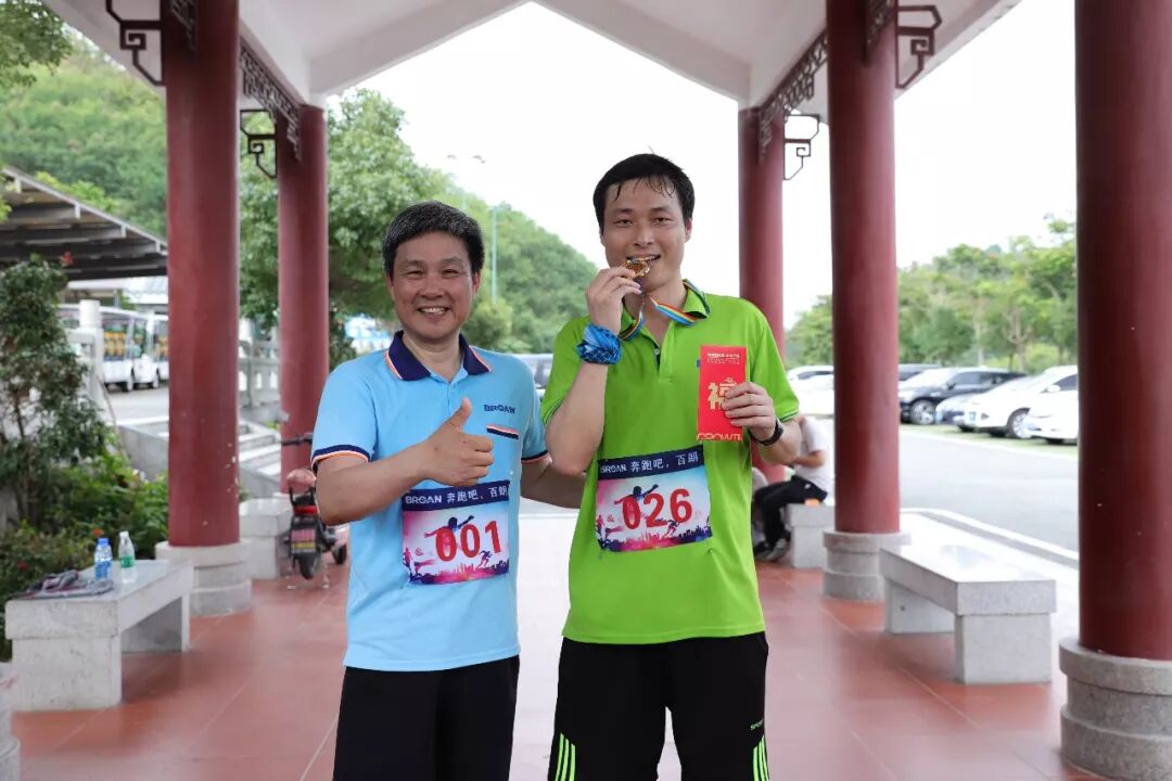 比赛分为男子组和女子组,男子组的健儿们在跑道上凝聚力量,挥洒汗水,奋力拼搏,激情飞扬;经过2个多小时的激烈比拼,最终男子组冠军由赵青华摘得,亚军是吴竹民,胡庆列获得季军,百朗中国区总经理张超博士为获奖的健儿们颁发奖牌,并与他们握手合影。