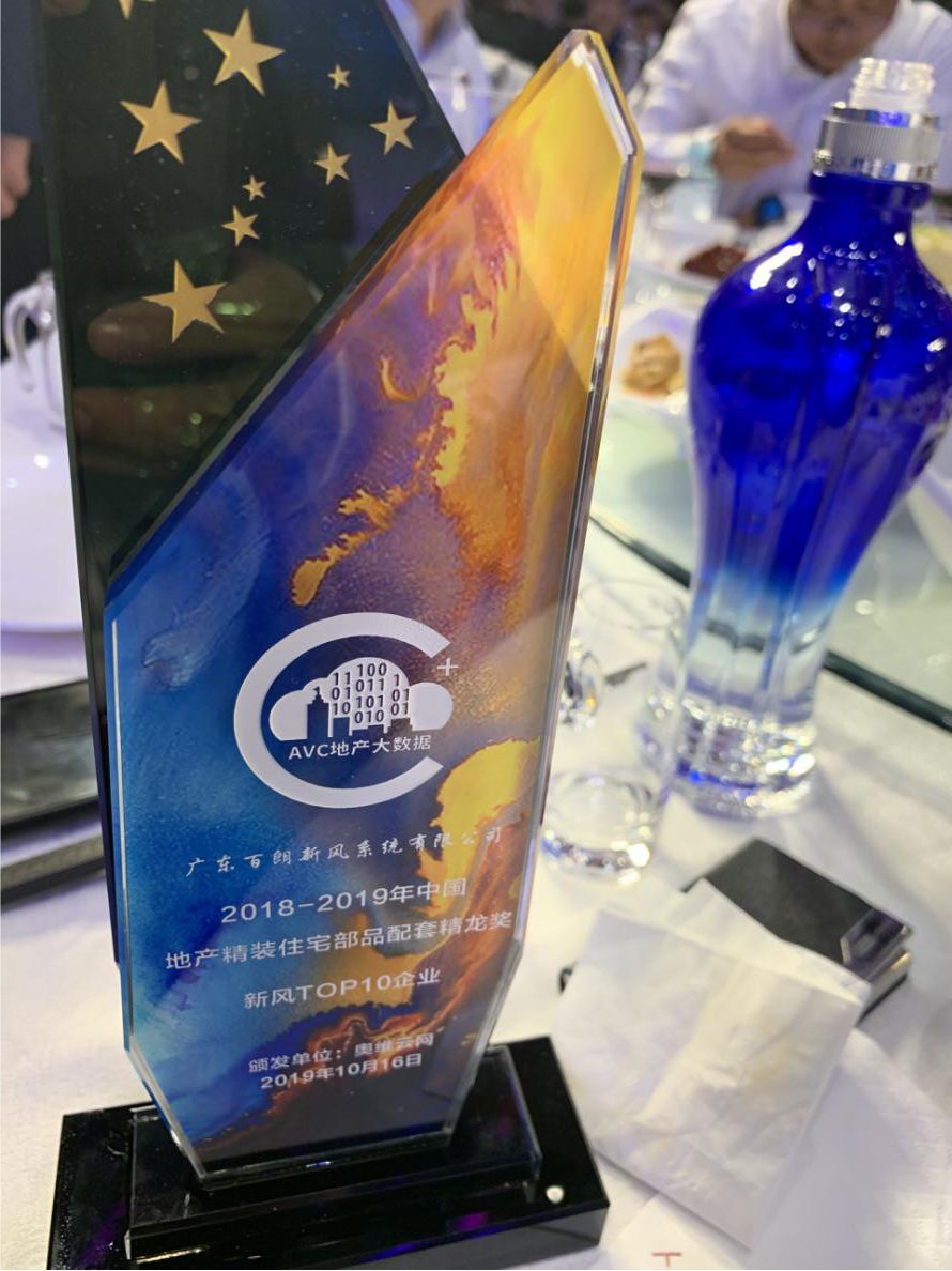 奥维云网在本次会议中发布了2019年度房地产精装白皮书以及地产精装开发商及部品供应商公益排行榜单,百朗凭借在精装住宅领域的优异表现以及突出的品牌综合实力,荣获“2018-2019年中国地产精装住宅部品配套精龙奖—新风TOP 10企业”称号,实至名归,可喜可贺。